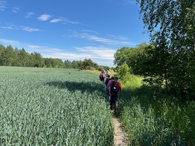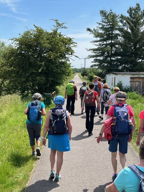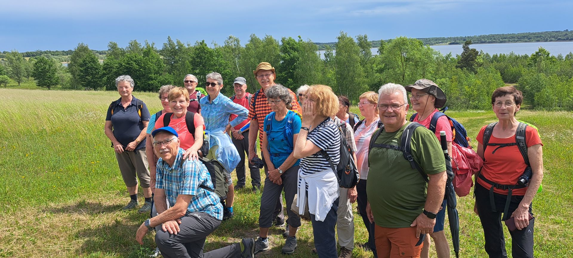 Die Wanderung startete am Bhf. Regis- Breitingen, an der Pleiße entlang führte der Weg durch den Ort, vorbei am Stadion und weiter bis nach Deutzen. Nach anfänglichem leichten Regen schien später die Sonne und brachte alle zum Schwitzen. Durch die Lobstädter Lachen (Restloch Deutzen) führte der Weg zum Aussichtspunkt Tagebau Schleenhain. Am Aussichtspunkt konnten wir sogar die Wasserbüffel bei einem Bad im See beobachten. Auf versteckten Pfaden erwanderten wir das Gebiet durch den Kammerforst zurück nach Regis- Breitingen. Am Ende der Wanderung im Gasthof „Zur Erholung“ hatten sich alle Wanderer ein kühles Getränk redlich verdient und die interessante Wanderung fand ihren Abschluss.