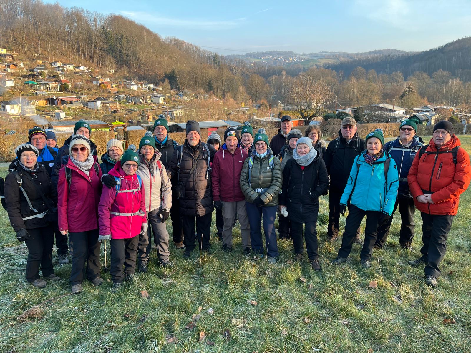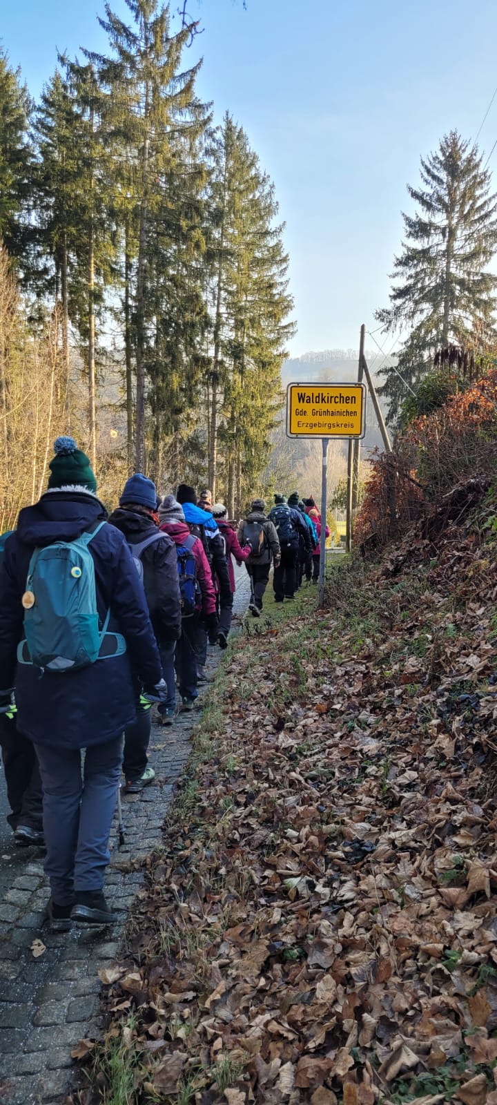 Das Ziel unserer diesjährigen Adventswanderung war der Männelmarkt in Augustusburg. Per Zug ging es nach Zschopau und teilweise auf dem Zschopautalweg über Waldkirchen nach Augustusburg. Das Wetter spielte mit und am Vormittag kamen wir bei Sonnenchein auf unserer „Abkürzung“ richtig ins schwitzen. Die „Kurzwanderer“ liefen entlang des Flusslaufes eine Route mit geschmückten Weihnachtsbäumen. Auf dem Weihnachtsmarkt stärkten sich alle Wanderer am vielfältigen Angebot. Wer wollte besichtigte im Anschluss Schloss Augustusburg. Die Heimreise begann mit einer Fahrt in der Drahtseilbahn zur Talstation in Erdmannsdorf. Gut gelaunt kamen alle Wanderer an ihren Zielbahnhöfen wieder an. Die Wanderung war ein gelungener Abschluss des Wanderjahres 2024!