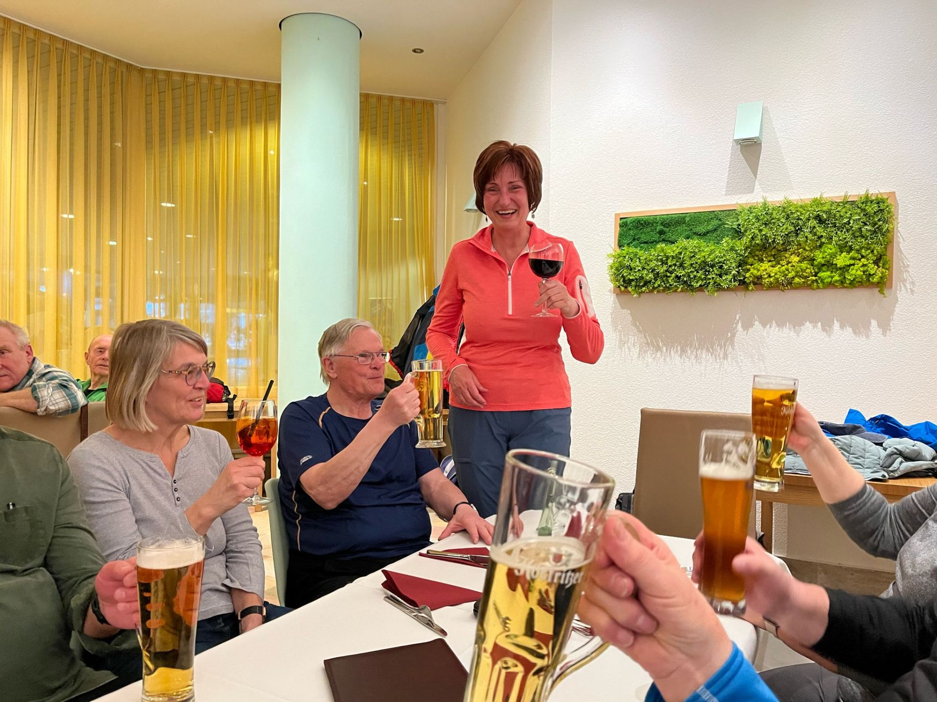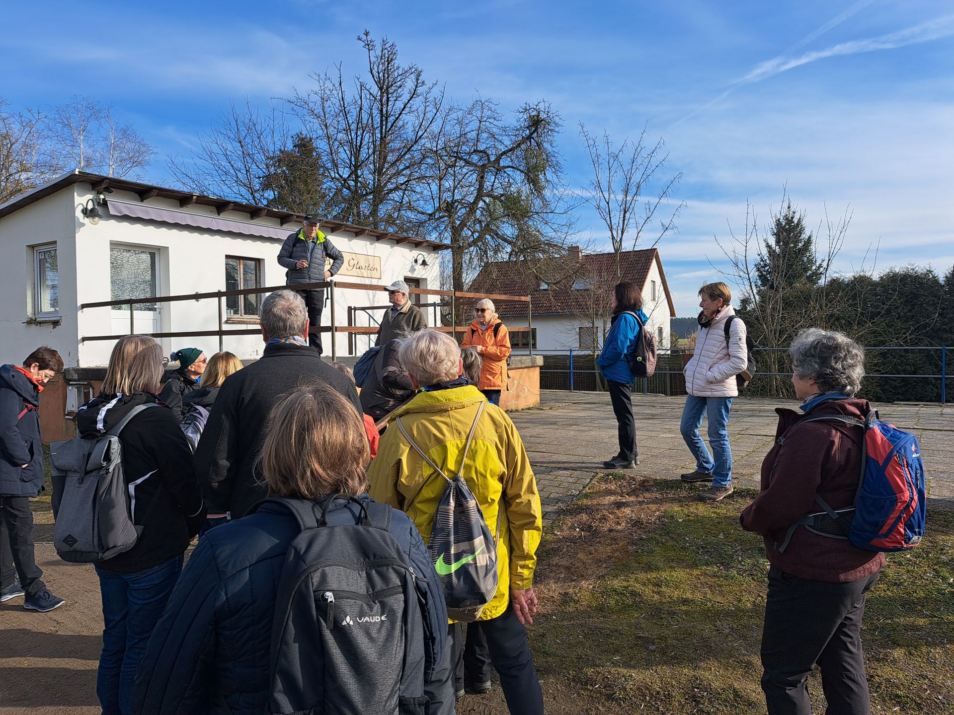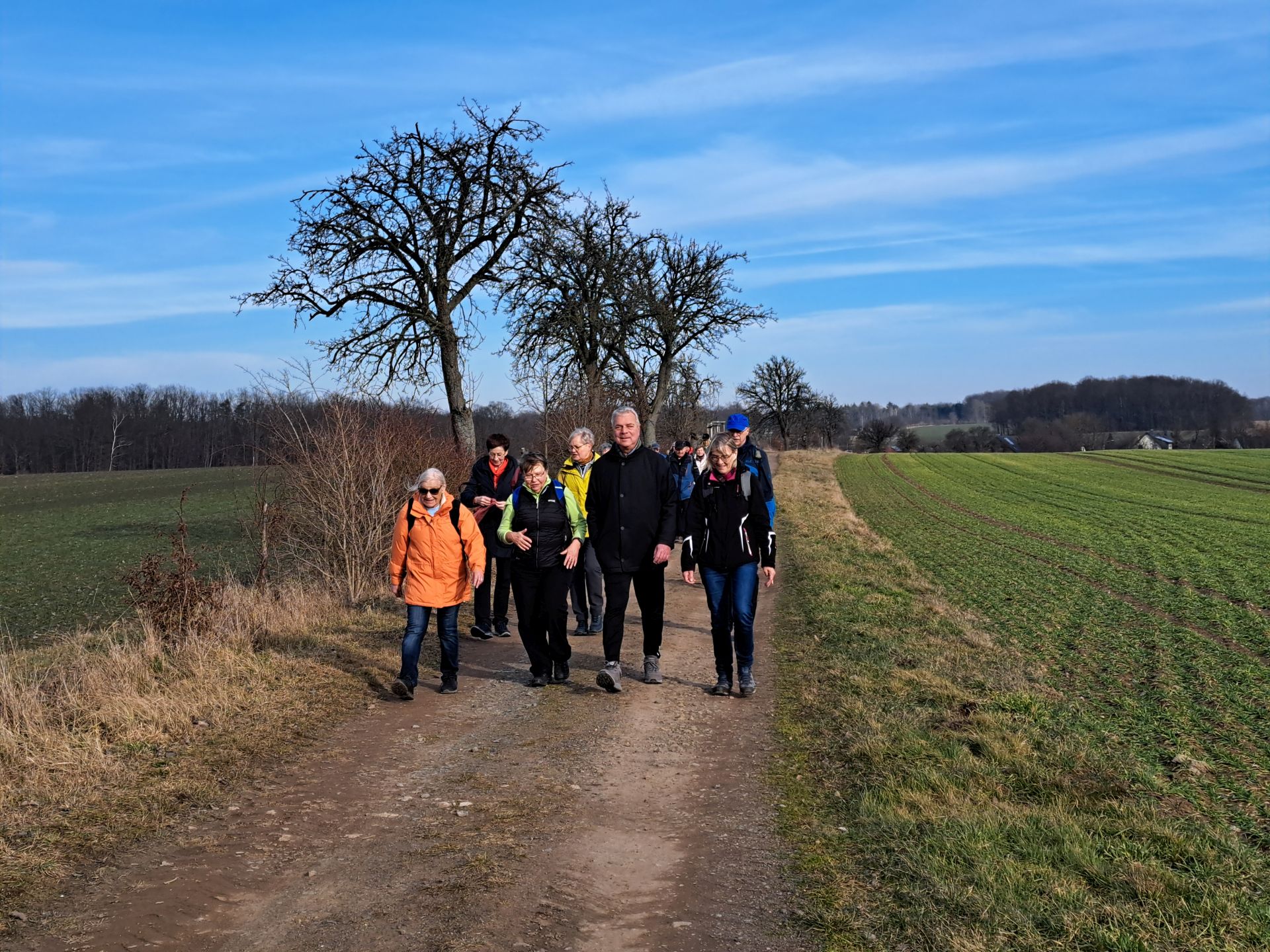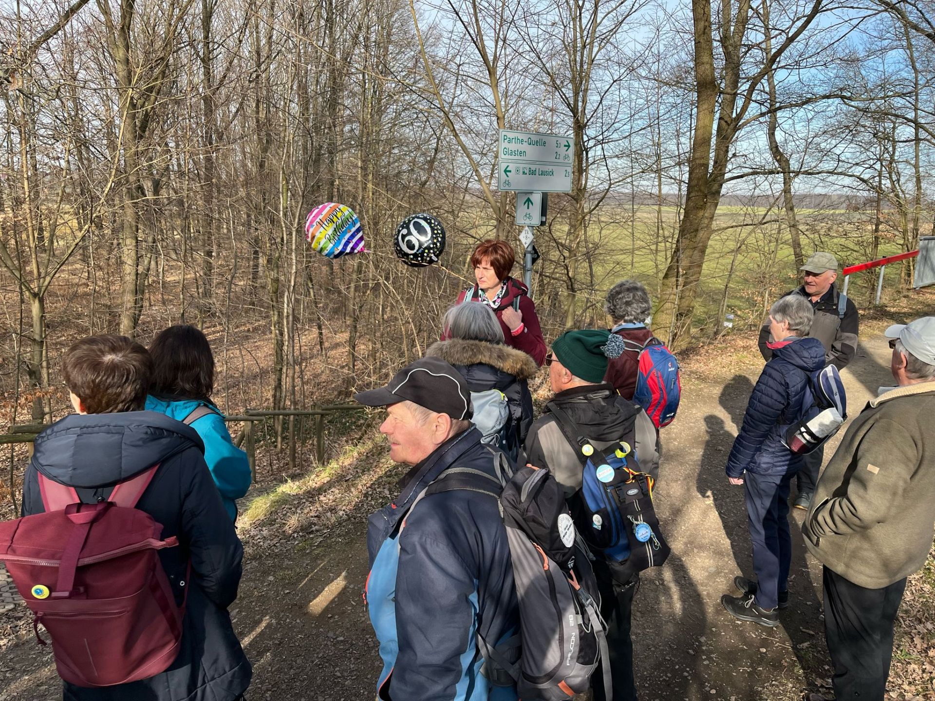 Die Tour startete am Riff und führte auf dem alten Bahndamm bis Glasten. Das Wetterspielte mit und fröhliche Wanderer erfreuten sich am Erwachen der Natur. Von Glasten in es im Bogen nach Etzolshain, hier wurden wir mit einem Panoramablick auf Bad Lausick belohnt. Die Tour endete mit einer Runde im Kurpark über den Schmetterling und am Weinberg vorbei zurück ans Riff. Zur Einkehr gab es viele Glückwünsche, Festreden, Danksagungen. Die Stimmung war bestens auch dank des guten Essens.