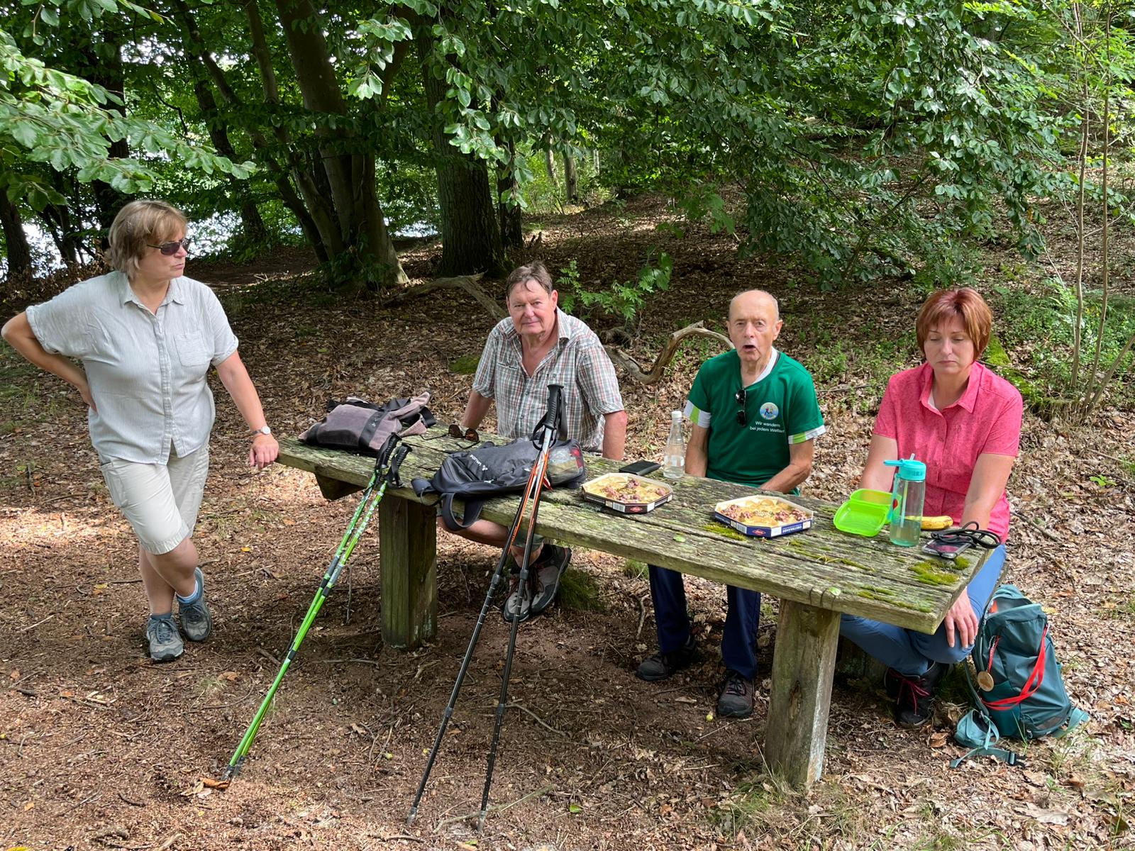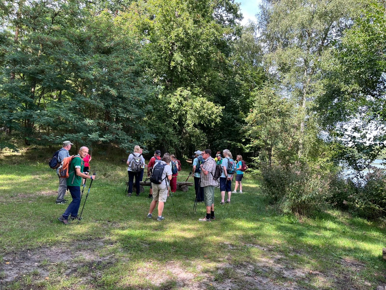An einem sonnigen Tag startet unsere Wandergruppe am Kloster Lehnin. Schon beim ersten Blick auf die historischen Mauern spürt man eine angenehme Ruhe. Das Kloster bietet eine kurze, aber eindrucksvolle Besichtigung: kunstvolle Mauerwerkstrukturen und Geschichten aus Jahrhunderten. Nach dem Klosterbesuch geht es hinaus in die Natur Richtung Kolpinsee. Der Weg führt uns durch lichtdurchflutete Waldstücke. Am Ufer des Kolpinsees legen wir eine Rast ein. Das Wasser spiegelt den Himmel, und eine leichte Brise sorgt für Abkühlung. Wir genießen unsere Snacks, tauschen Eindrücke aus und lassen die Umgebung auf uns wirken. Am Nachmittag nach der Ankunft im Hotel zieht es uns zur Seeterrasse, wo eine Verschnaufpause mit Blick auf den See für Entspannung sorgt. Eiscreme, ein kühles Getränk und ein wenig Schatten unter den Sonnenschirmen sorgen für die perfekte Erfrischung. Die Gruppe sitzt zusammen, lacht, erzählt Geschichten und genießt das sonnige Wetter, das den Tag so besonders macht.  Im Kaminzimmer geniesen wir das Abendessen und die private, „unter uns“-Atmosphäre. Man spürt eine enge Gemeinschaft, die sich während des Tages gebildet hat, und wir reden über die Pläne für den nächsten Tag.
